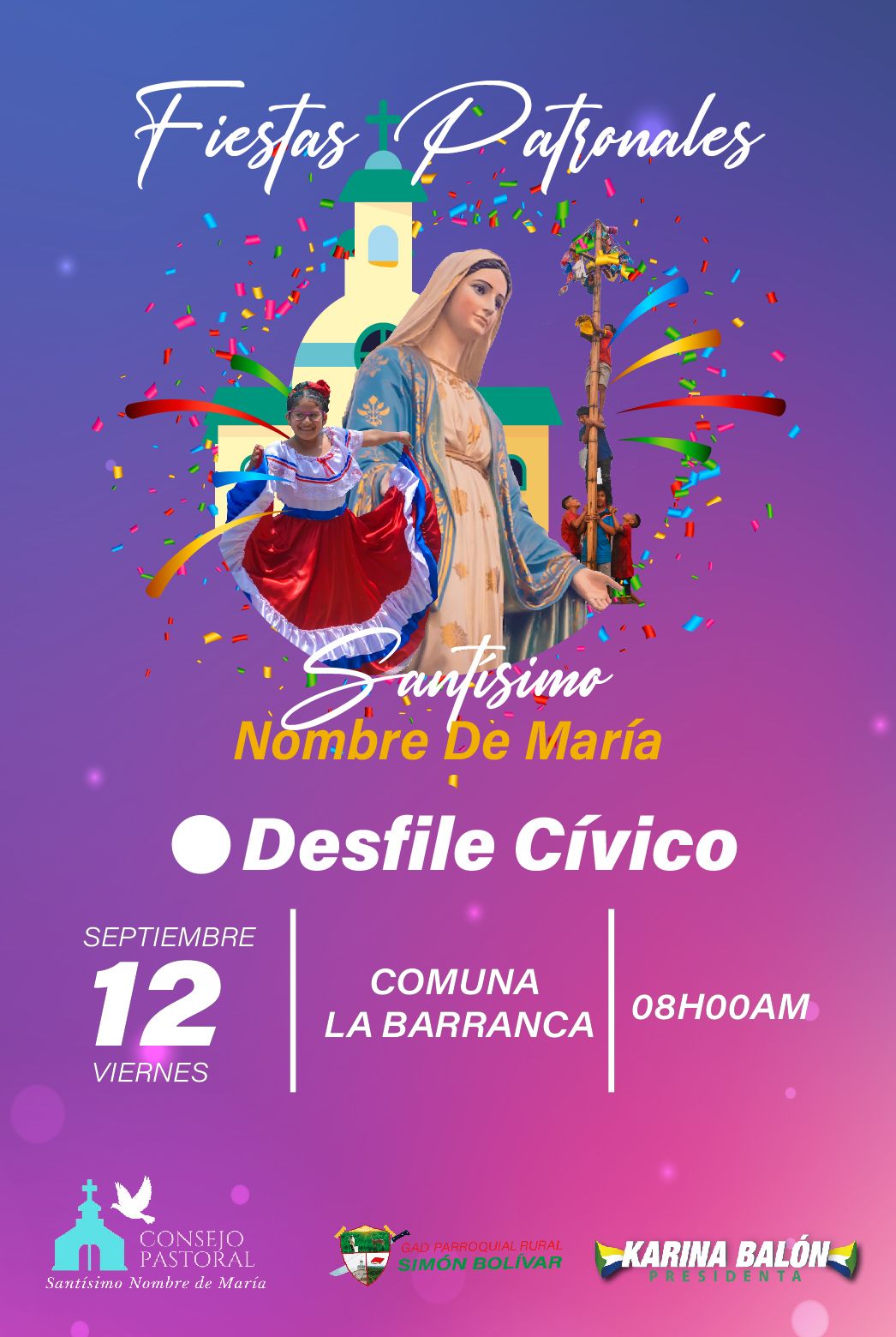 Este 12 de septiembre te invitamos a celebrar con alegría y devoción el desfile cívico en honor al Santísimo Nombre de María.